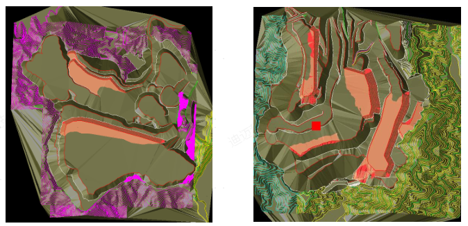 圖2-采用DIMINE“填挖方量”測量工具對排土場作業量進行繪制